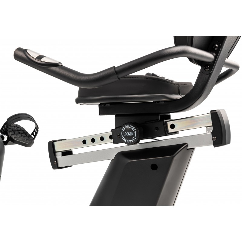 Το κάθισμα του ποδηλάτου R15 έχει επιλογή μεταξύ 9 θέσεων. Η ρύθμιση της θέσης γίνεται πανεύκολα με ξεβιδώνοντας την ασφάλεια που βρίσκεται στα πλάγια του καθίσματος. Ρυθμίστε την θέση σύμφωνα με το ύψος σας, προκειμένου να μειώσετε την καταπόνηση στα γόνατα.