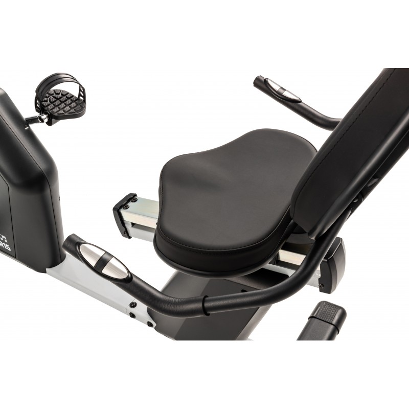 Το κάθισμα είναι από αφρώδη υλικά, τα οποία προσφέρουν προστασία αλλά και καλή στήριξη. Δεξιά και αριστερά από το κάθισμα θα βρείτε 2 λαβές με επένδυση μαλακών υλικών που προσφέρουν άνετο και γερό κράτημα, ενώ στις άκρες των λαβών θα βρείτε τους αισθητήρες καρδιακών παλμών. Οι αισθητήρες είναι εργονομικά τοποθετημένοι έτσι ώστε να ακουμπάνε τα χέρια σας πάνω τους όντας σε φυσική θέση. Αυτό θα βοηθήσει ώστε να παρακολουθείτε καλύτερα την προπόνηση σας (τους παλμούς, τις θερμίδες που καίτε κλπ) απευθείας από την οθόνη του ποδηλάτου.