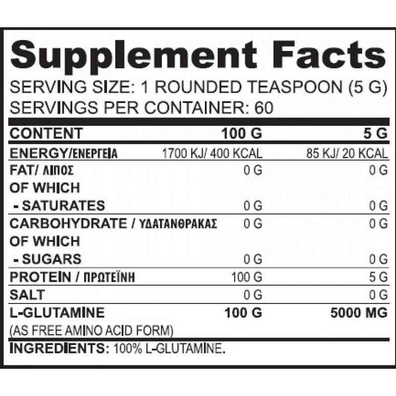100% φαρμακευτικής καθαρότητας L-Glutamine από την True Nutrition Σε περιόδους που το σώμα υφίσταται τεράστια καταπόνηση από την προπόνηση ή και την καθημερινότητα, η λήψη ενός συμπληρώματος γλουταμίνης είναι απαραίτητη αφού η γλουταμίνη είναι το βασικό αμινοξύ για την αποθεραπεία και την επιδιόρθωση των μυϊκών τραυματισμών. Αυτά τα χαρακτηριστικά κάνουν την γλουταμίνη άκρως απαραίτητη για κάθε αθλητή ώστε να μην φτάσει στα όρια της υπερπροπόνησης και κατάρρευσης. Η πρόσθετη λήψη 10-15gr γλουταμίνης την ημέρα θα σας κάνει να νιώσετε πραγματικά αναγεννημένοι!