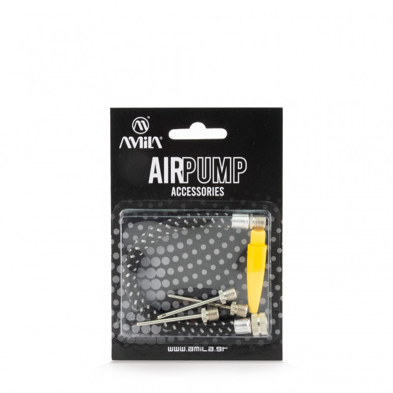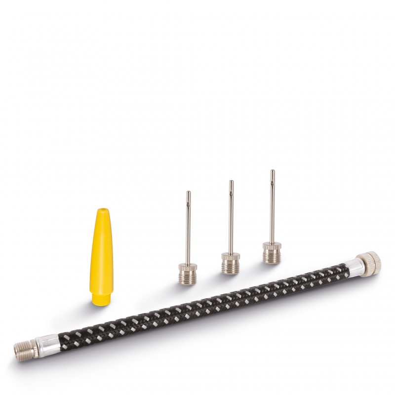 Το σετ διαθέτει τρεις ανθεκτικές μεταλλικές βελόνες, ένα πλαστικό ακροφύσιο και μια εύκαμπτη προέκταση με πλέξη για μεγαλύτερη ευκολία κατά το φούσκωμα. Προσφέρει πρακτικότητα και συμβατότητα με τις περισσότερες τρόμπες, αποτελώντας απαραίτητο αξεσουάρ για προπονητές, αθλητές και λάτρεις του αθλητισμού.