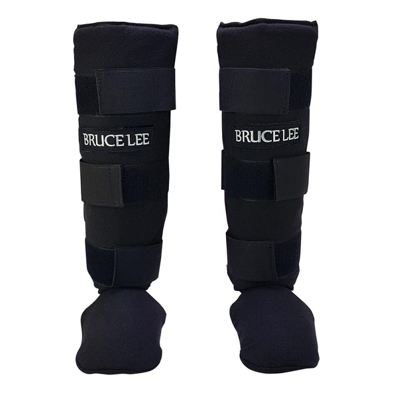 Υλικο: βαμβάκι και γέμιση αφρού, προσχηματισμένοι και ισχυροί ελαστικοί ιμάντες velcro. Στις πολεμικές τέχνες τα πράγματα συχνά γίνονται έντονα. Η πιθανότητα ενός δυσάρεστου τραυματισμού στα πόδια είναι μεγάλη, ειδικά εάν έχετε λίγη εμπειρία στο χώρο των πολεμικών τεχνών. Είναι συνεπώς απαραίτητο να φοράτε προστατευτικά και συγκεκριμένα το Bruce Lee Allround Shinguard κατά τη διάρκεια μιας προπόνησης ή ενός αγώνα. Τα προστατευτικά ποδιών έχουν τέλεια εφαρμογή και προσφέρουν εξαιρετική προστασία. Η γέμιση αφρού απορροφά όλα τα χτυπήματα. Αυτά τα προστατευτικά είναι κατάλληλα για διάφορες πολεμικές τέχνες, όπως kickboxing, Thai boxing ή μικτές πολεμικές τέχνες. Οι ελαστικοί ιμάντες και οι ανθεκτικοί σύνδεσμοι Velcro διασφαλίζουν ότι τα προστατευτικά δεν γλιστρούν