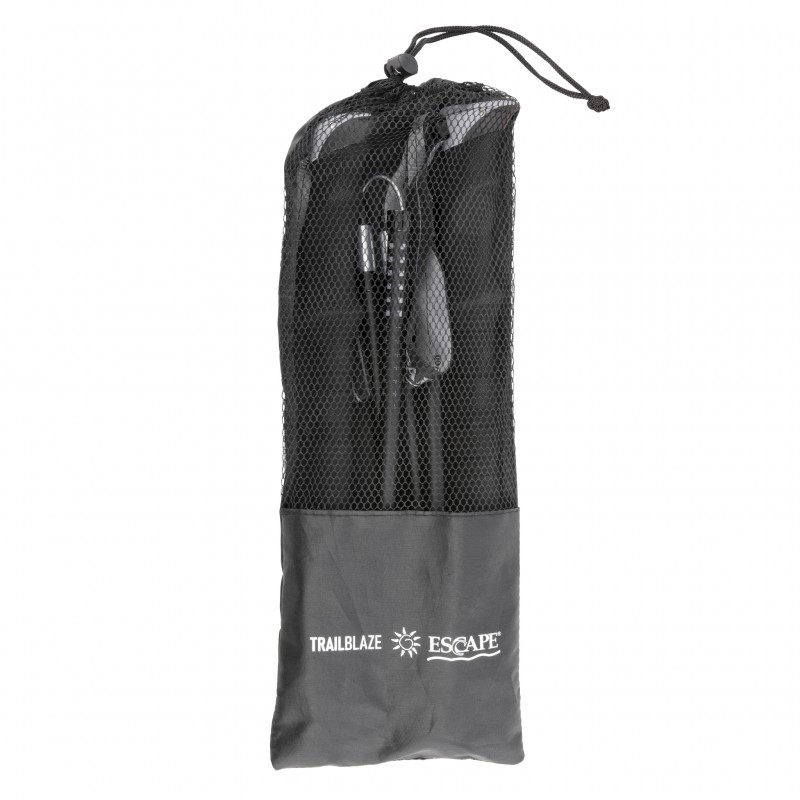 Το ζευγάρι trekking pole Escape Trailblaze, έρχεται με θήκη μεταφοράς και αποθήκευσης τύπου «πουγκί». Μαζί με τα μπαστούνια θα βρείτε συνολικά 1 μύτη και 2 έξτρα plates. Η μύτη είναι ιδανική για σκληρές και ολισθηρές επιφάνειες, ενώ τα 2 plates είναι για άμμο/λάσπη η μία και χιόνι άλλη.