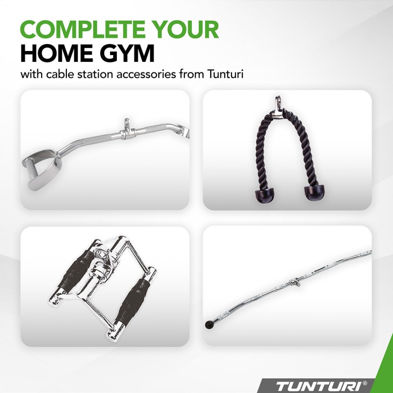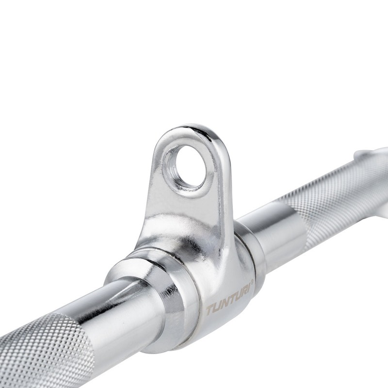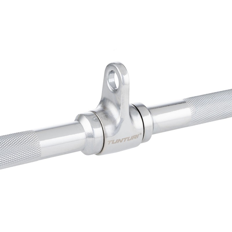 Θέλετε να ανεβάσετε επίπεδο στην προπόνηση της πλάτης, των χεριών και των ώμων σας; Τότε επιλέξτε τη μπάρα έλξεων πλάτης της Tunturi. Είναι κατασκευασμένη από ανθεκτικό ανοξείδωτο ατσάλι και διαθέτει τέσσερις λαβές με οδοντωτή επιφάνεια για καλύτερη πρόσφυση. Συνδέεται σε όλα τα μηχανήματα άσκησης με τροχαλίες, ανεξαρτήτως μάρκας. Χάρη στην ανθεκτική κατασκευή της, η μπάρα αυτή είναι επίσης κατάλληλη για επαγγελματική χρήση.