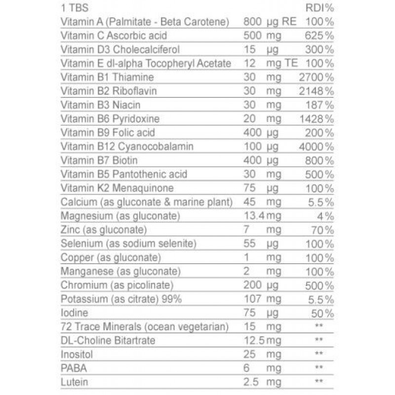 Η Woman Multivitamin της Swedish Nutra αποτελεί την πλέον ολοκληρωμένη γυναικεία φόρμουλα πολυβιταμινών της αγοράς σε υγρή – πόσιμη μορφή καθώς : - Περιέχει πλήρη σειρά βιταμινών και μετάλλων , εμπλουτισμένη με 72 μέταλλα από ωκεάνιες και φυτικές πηγές, που υπερκαλύπτει και τις πιο εξειδικευμένες ανάγκες του γυναικείου οργανισμού. - Με το “Woman Amino Blend” παρέχει όλα τα απαραίτητα αμινοξέα για την παραγωγή ενέργειας και την εξασφάλιση της αντοχής που απαιτεί μία έντονη καθημερινή δραστηριότητα. - Εμπλουτίζεται με το “Woman Bioactive Life Blend” που αποτελεί τον πληρέστερο κατάλογο υπερ-τροφών, φυσικών αντι-οξειδωτικών και Greens που θα μπορούσε κανείς να βρει σε ένα ανάλογο σκεύασμα! - Εμπεριέχεται σε πολύ-φιλτραρισμένο νερό φυσικής πηγής, χωρίς τεχνητά γλυκαντικά, που διευκολύνει την απορρόφηση και την βιο-διαθεσιμότητα των στοιχείων της. Η Woman Multivitamin περιέχει συνολικά 147 ενεργά στοιχεία σε ικανές δόσεις, τα οποία παράγονται με την απαράμιλλη Σουηδική ποιότητα ώστε να συνεργούν στην προαγωγή της υγείας και της ευεξίας σας. Δοσολογία: Καταναλώστε 15ml κάθε πρωί. Μετά το άνοιγμα να διατηρείται στο ψυγείο και να καταναλωθεί εντός 2 μηνών.