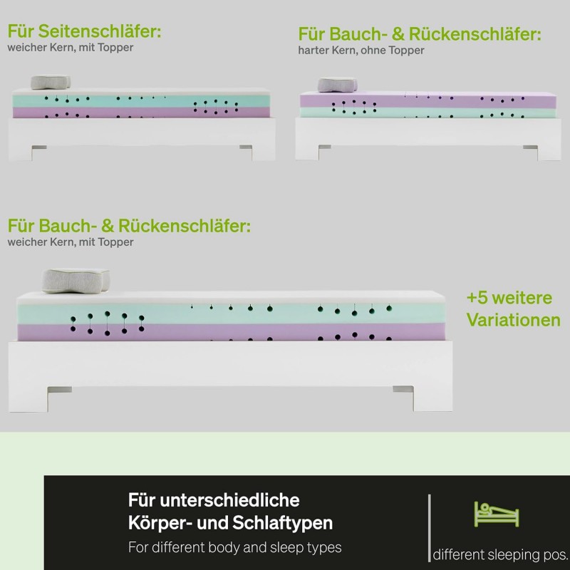 Ο επαναστατικός πυρήνας δύο στρωμάτων (μαλακό & σκληρό), σε συνδυασμό με το αφαιρούμενο topper visco foam, σου επιτρέπει να προσαρμόσεις τη σκληρότητα και την αίσθηση του στρώματος ανάλογα με τις ανάγκες και τις προτιμήσεις σου – είτε κοιμάσαι στο πλάι, ανάσκελα ή μπρούμυτα.