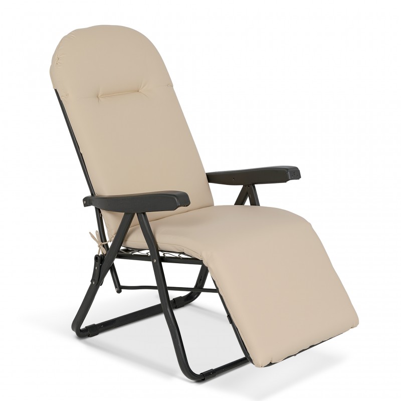 Συμπεριλαμβάνει μαλακό μαξιλάρι 7 εκατοστών από Polycotton. Η πολυθρόνα είναι κατασκευασμένη με οκτάγωνο σκελετό 35x20 χιλιοστών ιδιαίτερης αντοχής ενώ τα μπράτσα της είναι πλαστικά. Ευρωπαϊκής κατασκευής (Ιταλία)